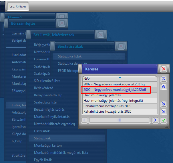 A Statisztikák / Statisztikai listák menüpontban a 2009 - negyedéves munkaügyi jel.2022től listát kell választani: