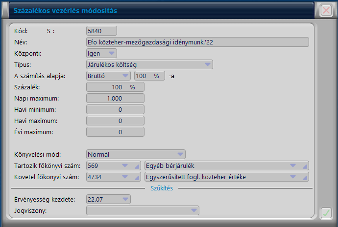 A 166-os verziótól kezdve a programban az egyszerűsített foglalkoztatás közterhét tartalmazó százalékos vezérlések már az emelt összegeket tartalmazzák. A július 1. utáni számfejtések esetében már ezek az emelt összegek kerülnek számfejtésre.