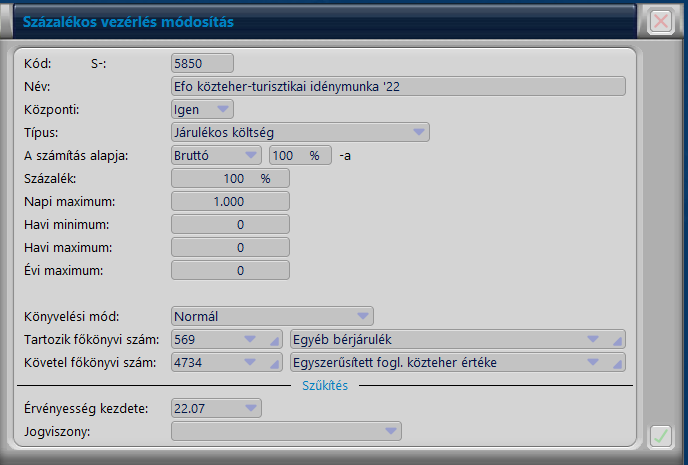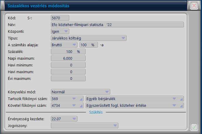 A kedvezményt a Bérösszesítő 2022 nevű központi összesítő tartalmazza. Amennyiben egyedi összesítőket használnak, kérjük az S990014-es százalékos vezérlés írják be a megfelelő helyre.