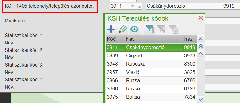 A 24-es sort, amely a Telephely településazonosítója, a 2025-re vonatkozó adatszolgáltatástól kezdődően a Munkaköri besorolásban megadott értékkel tölti ki a program.
