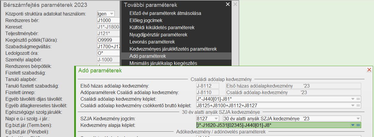 A Számfejtés paraméterek / Adó paraméterek blokkban kerül definiálásra.