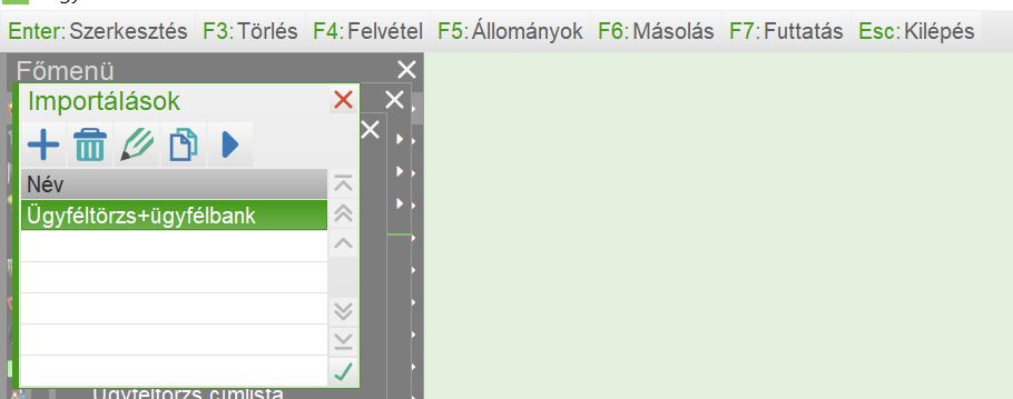 (Erre akkor van lehetőségünk, ha az akciót Üzemmód = Bevitel paraméterrel indítjuk el. E nélkül csak a futtathatjuk az elkészített importálás sablonokat.)