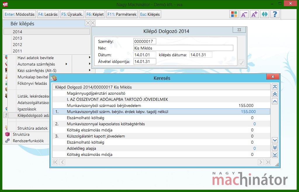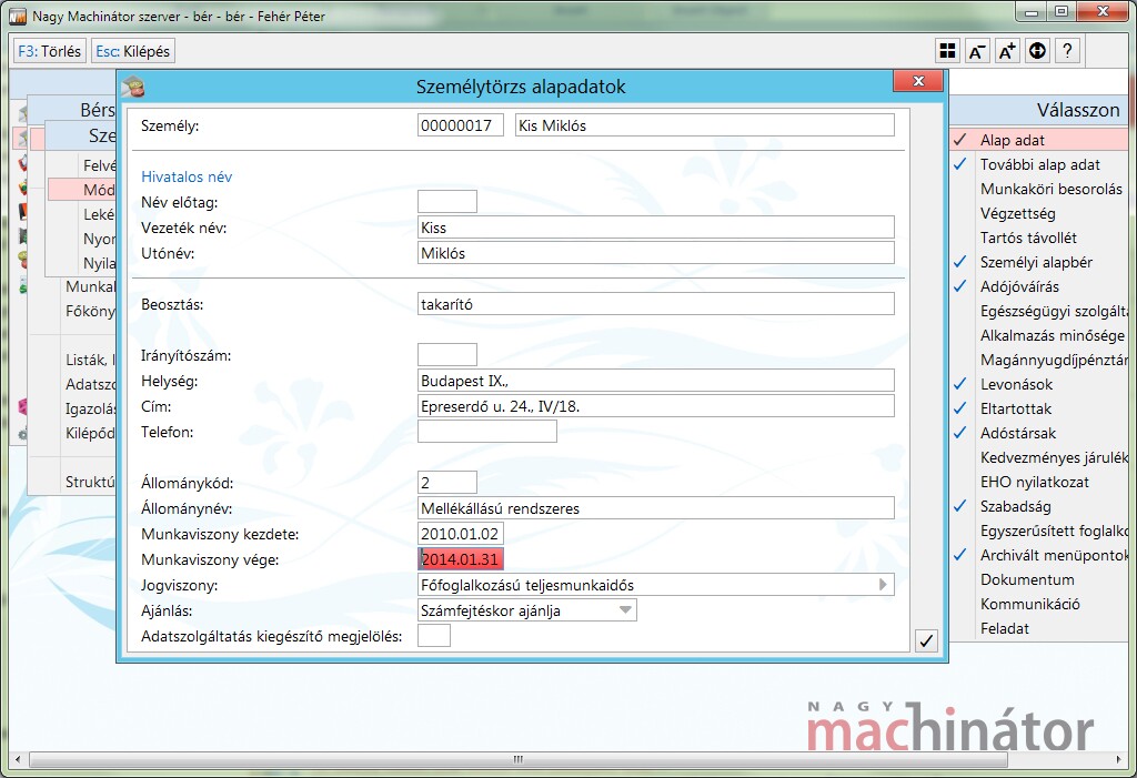 A Személytörzsben ki kell tölteni a munkaviszony vége dátumot.