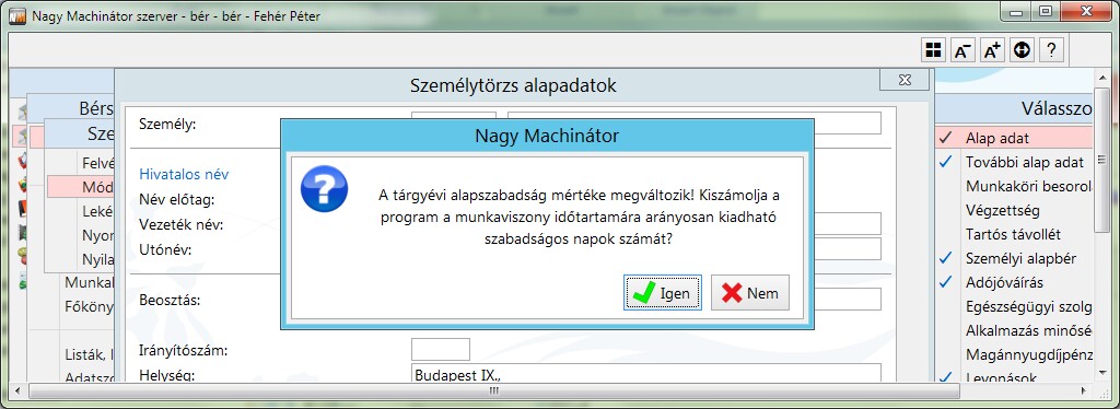 A munkaviszony vége dátum megadása után a program felteszi az alábbi kérdést: