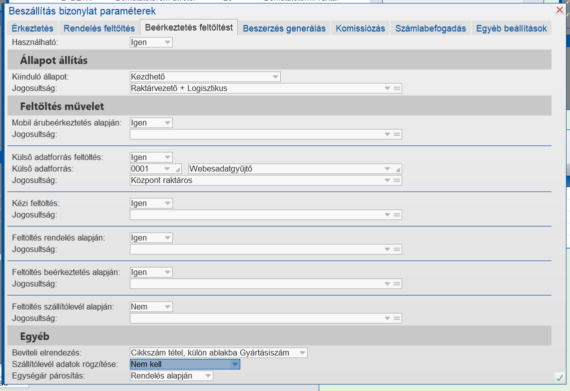 Amennyiben az Átvételt befejezettnek lehet tekinteni a mobil árubeérkeztetés befejezése után, be lehet állítani úgy is a rendszert, hogy az Átvételt automatikus lezárja a program.