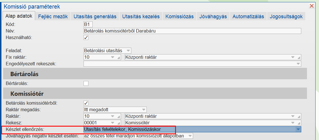 Annak érdekében, hogy követhetők legyenek az események a raktári dolgozó számára beállítható, hogy az utasításban látható mennyiség ellenére, már csak a pillanatnyilag készleten lévő mennyiséget lehessen betárolni.