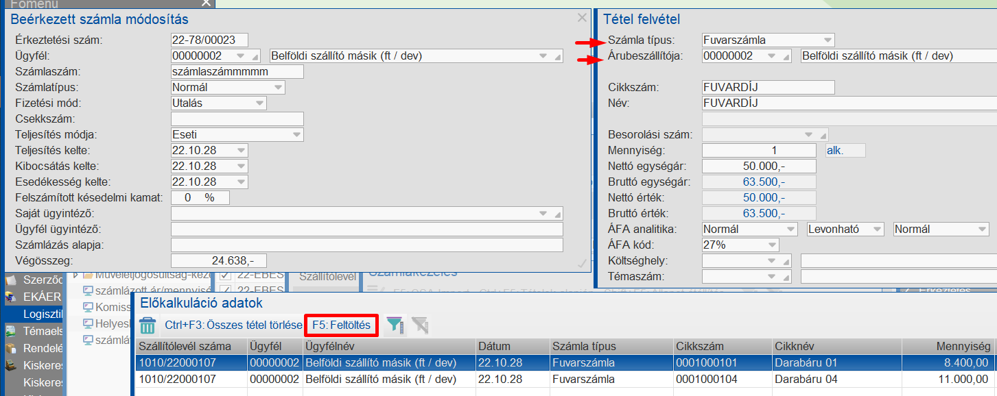 Egyrészt a szállítólevélhez kapcsolódó fuvarköltség a szállítólevél tételei között szét lett osztva automatikusan, másrészt a rosszul számlázott, befogadott számlatétel értéke alapján a beszerzési ár aktualizálva lett.