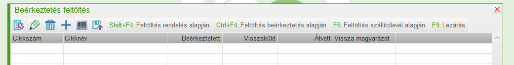 Az Átvétel menüpontban lehet megadni, hogy a raktárosok szerint mi érkezett meg a raktárra.