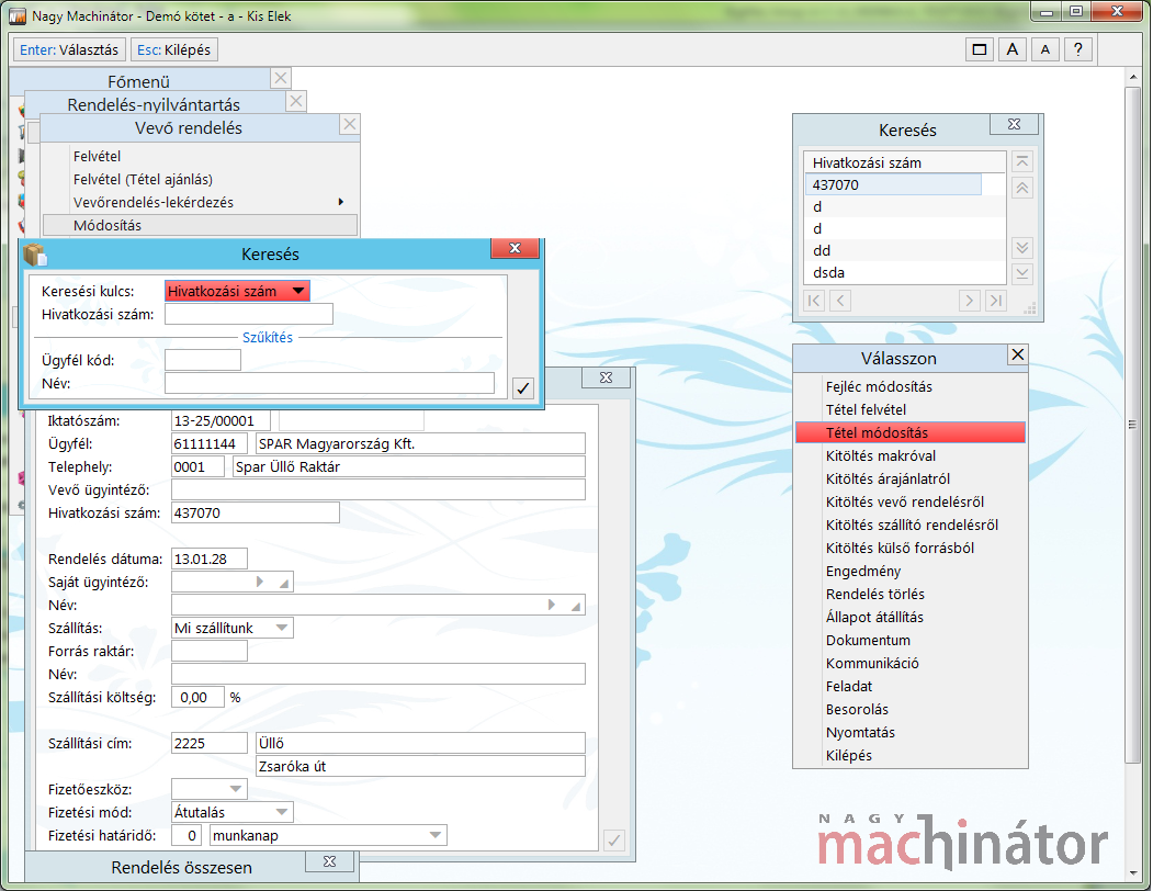 A beolvasott rendelés bekerül a Vevőrendelések közé. A Hivatkozási szám mező alapján könnyen meg lehet találni és igény esetén innen is ki lehet nyomtatni. Kapcsolódó paraméter: RendPrnElv