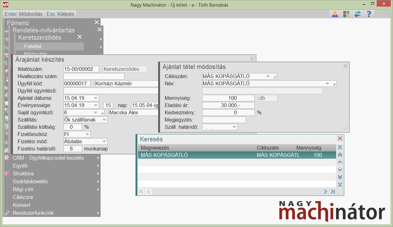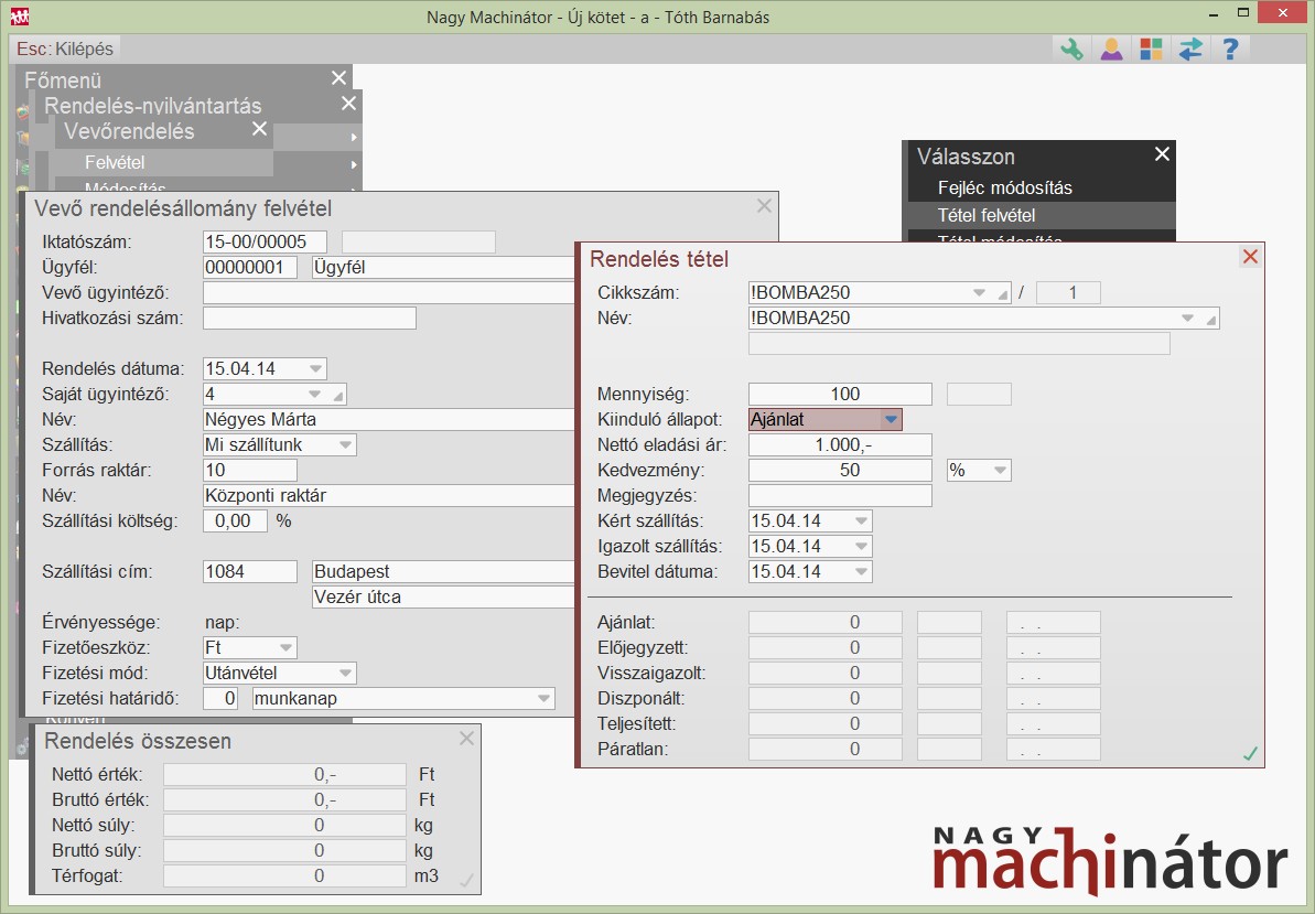 Árajánlat készítés egyik módja, hogy az ajánlatot a vevőrendelések rögzítésére szolgáló funkcióban írják.