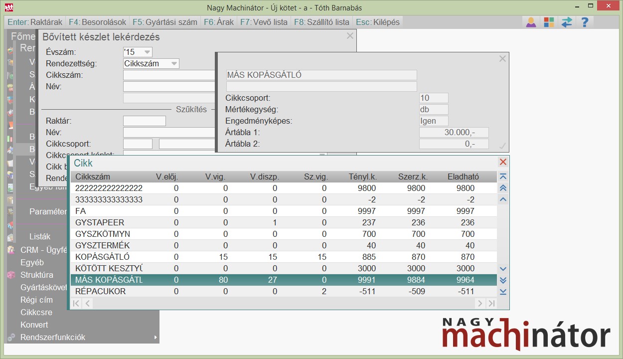 A bővített készlet lekérdezés átfogó képet ad az egyes termékekre vonatkozóan.