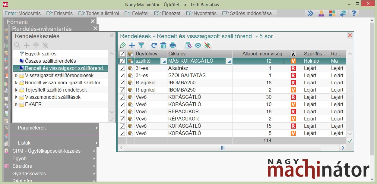 Az aktív rendelések lekérdezésére több mód található a programban.