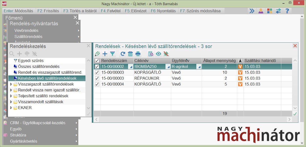A lekérdezésből nyerhető lista automatikusan futtatható, aminek köszönhetően időben információhoz lehet jutni az megígért, de nem szállított áruról és fel lehet venni a kapcsolatot az szállítóval.