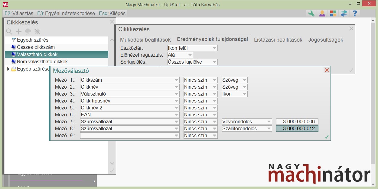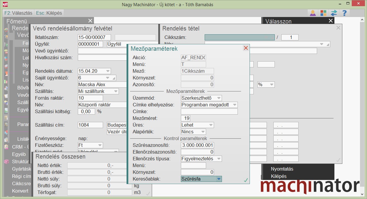 A rendelés funkció cikkválasztás mezője úgy paraméterezhető, hogy a hagyományos cikk választás helyett a cikk-kezelés funkció induljon el.