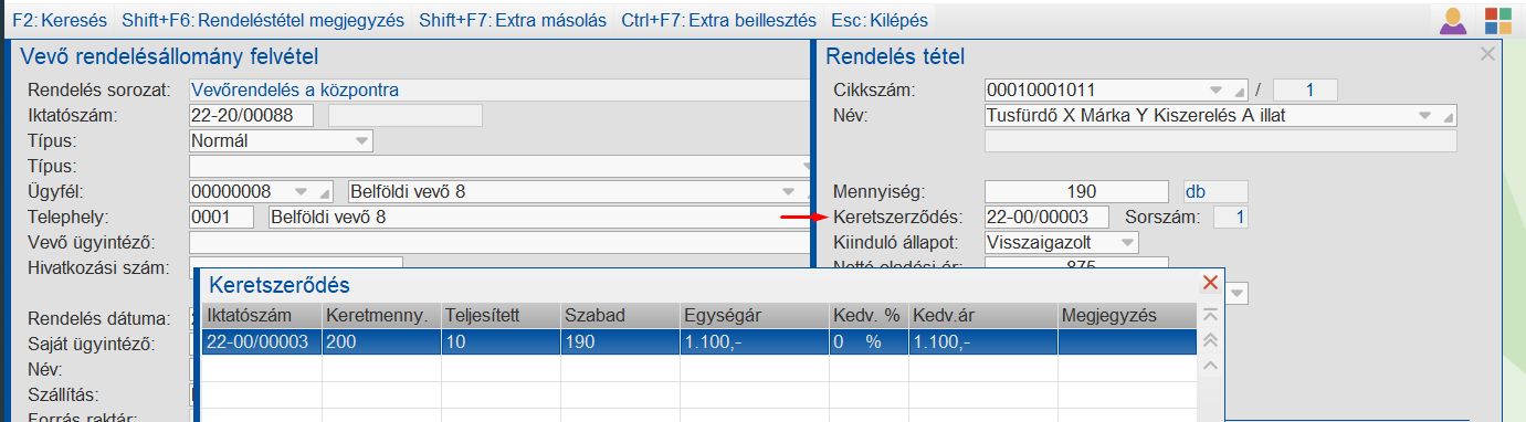 A keretszerződés során korábban felvett cikkeket a vevő rendelés tételeinél tudjuk összekapcsolni egymással.