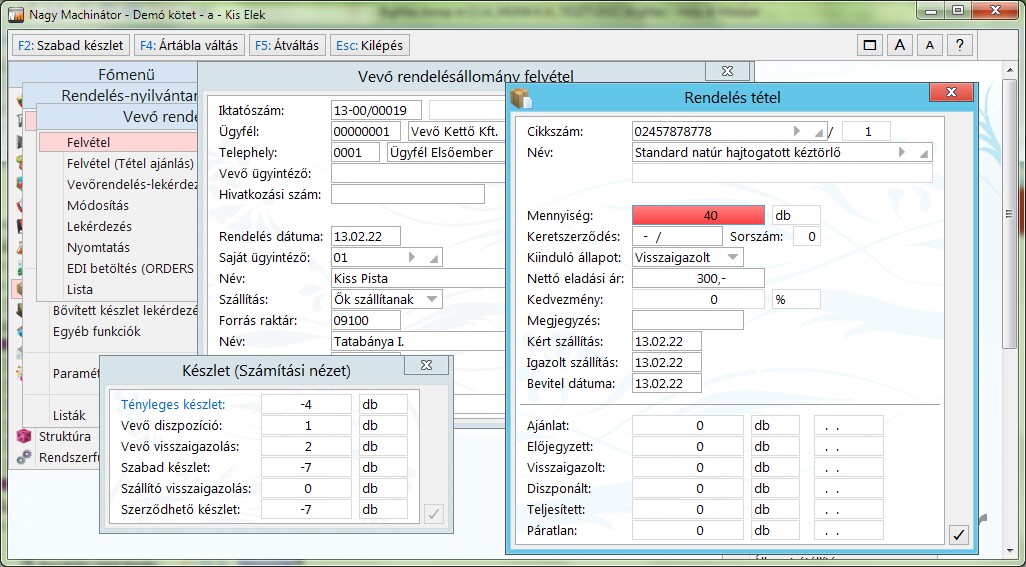 A funkció vevőrendelések kézi rögzítésére alkalmas.