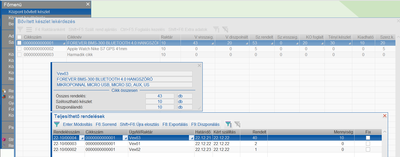 A program a vevőrendeléseket először sorba állítja, majd a szétosztja a kiadható készletet közöttük. A művelettel a rendelések közötti sorrendet lehet beállítani. -> Működési beállítások |