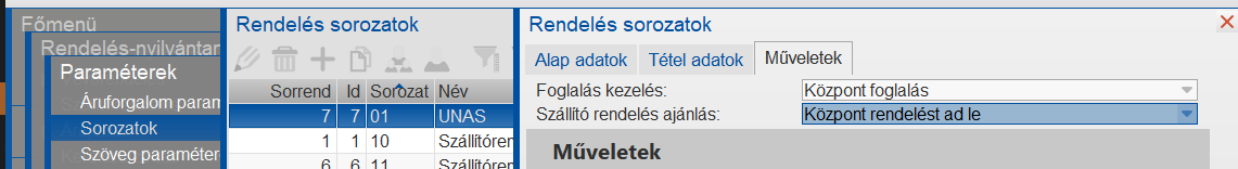 A rendeléssorozatban lehet megadni azt a Szállítórendelés ajánlást, amelynek le kell futnia a rendelésrögzítése után.