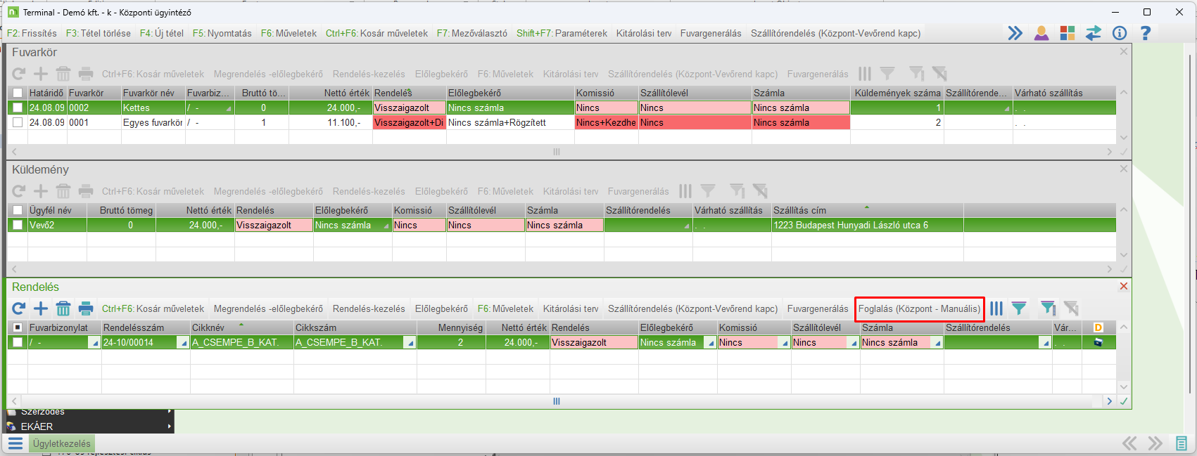 Amennyiben a vevőrendelés-kezelésben ki van töltve a Foglalás-kezelés, akkor az fog elindulni,
