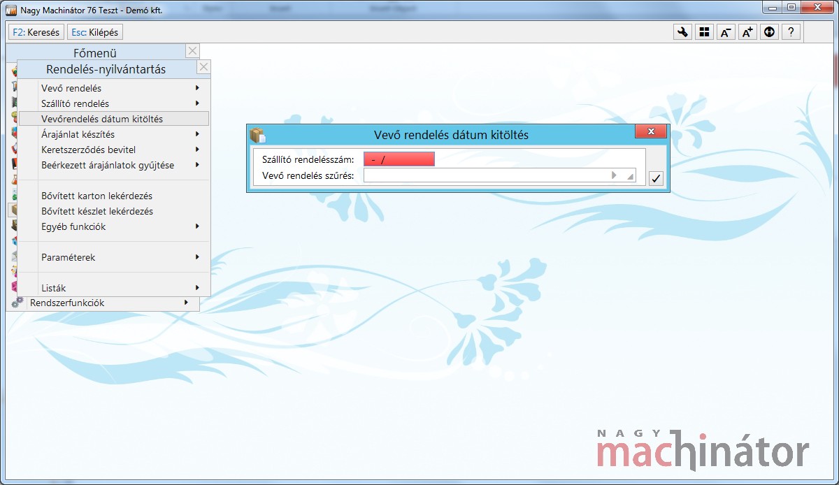 Figyelem! A funkció működéshez a Tipus = Vevő paraméter beállítása elengedhetetlen.