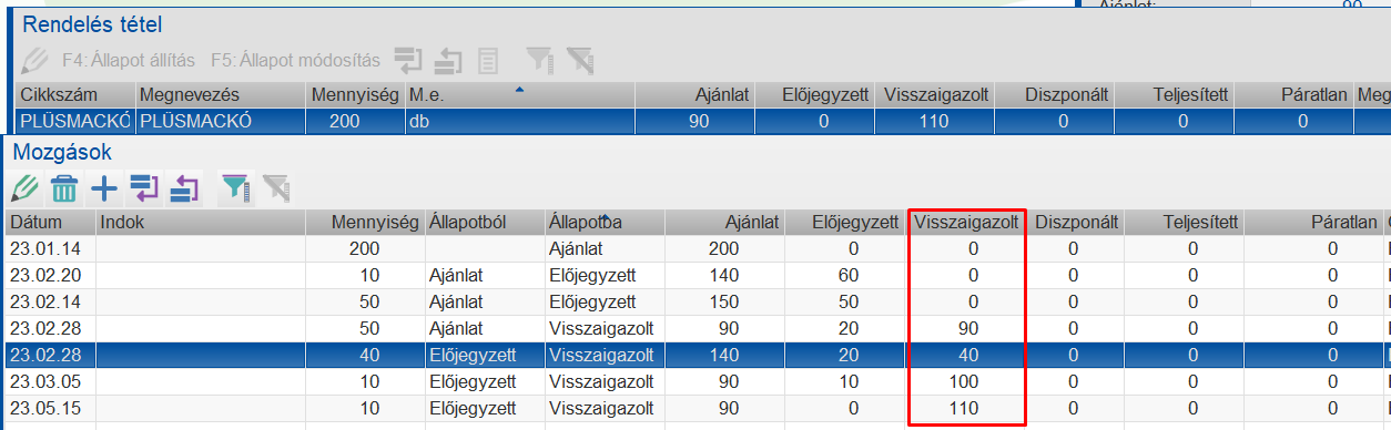Például ki kell mutatni, hogy az előző hónap hónap végén mennyi áru volt visszaigazolt állapotban.
