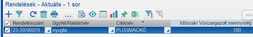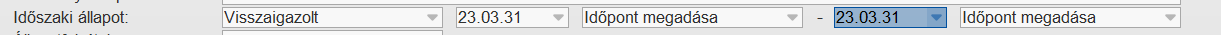 A szűrés Mezőválasztójában állítható az adott állapotra vonatkozó Időszaki állapot szűrés (Pl.: Időszaki Visszaigazolt mennyiség).