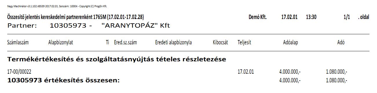 Ha túllépi, akkor azok a számlák, amelyek egyedileg elérik az 1.000.000 Ft-ot, a 65M-02 lapra kerülnek. Ezeknek a számláknak az összesített összege a 65M lap 04.sorába kerül. 2018.07.01. után csak azon számlák kerülnek a 2-es lapra, amelyek egyedileg elérik a 100.000 Ft áfát, akkor nem kell adatot átadni, ha az ÜgyfélÁfaÖsszesen összege eléri a 100.000 Ft-ot, de nincs olyan számla, amely egyedileg is eléri.