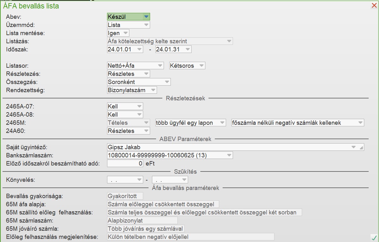 Az első áfabevallás elkészítése előtt érdemes egyszer elindítani a funkcióba épített újrakalkulálást. Lásd fenti képen: F5: Pénzforgalmi és 65M újraszámolás.