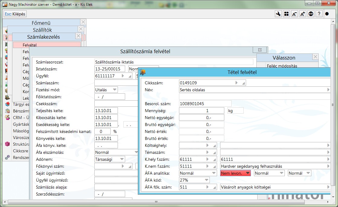A program a Saját adatban megadott alanyi adómentesség időszakába tartozó számlák esetén az áfaanalitika értékét Nem levonható értéken fogja megajánlani.