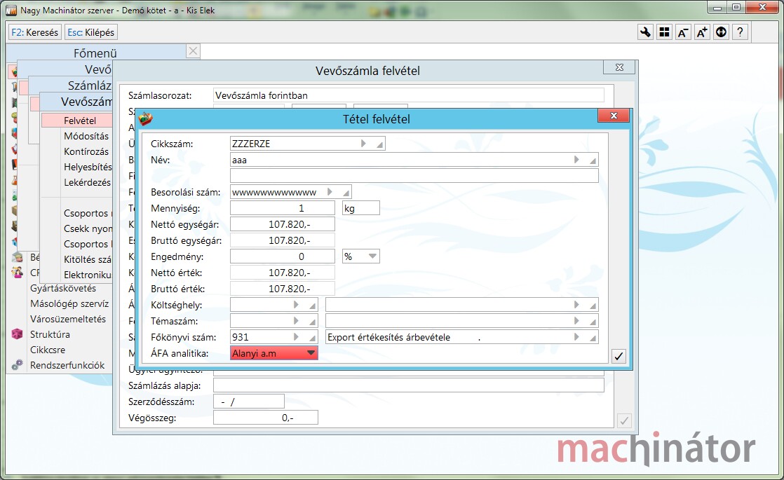 Alanyi adómentesség esetén a kimenőszámlák áfaanalitika értékébe Alanyi a.m. értéket ajánl a program.