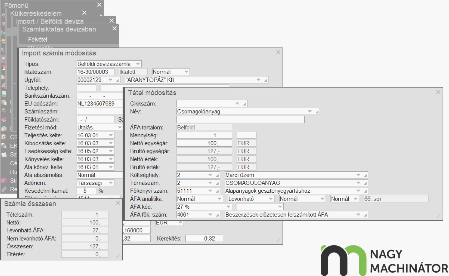 Az egyes analitikákban (Pl.: Importszámla) az adatrögzítés során 5 különböző gyűjtőbe lehet besorolni a feldolgozás alatt álló tételt.