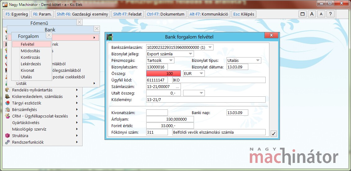 Pénzforgalmi elszámolású devizaszámla kiállítása, kontírozása és főkönyvi feladása az alábbiak szerint történik: