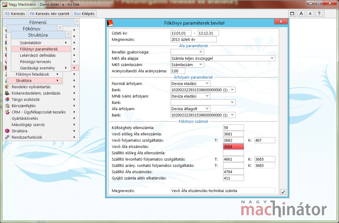 Továbbá érdemes megadni az Áfa árfolyam nyereség/veszteség főkönyvi számot is.