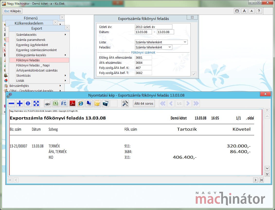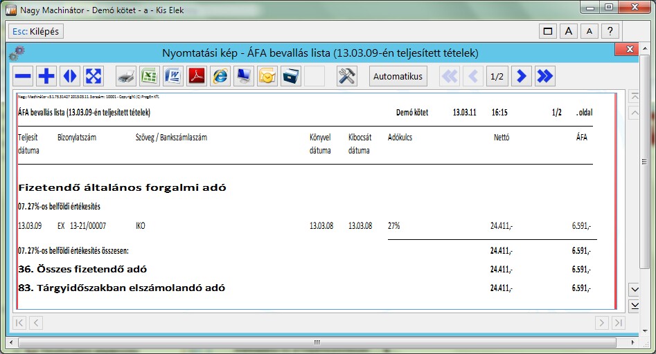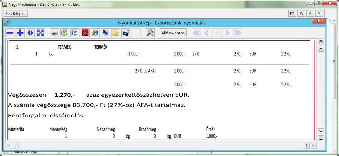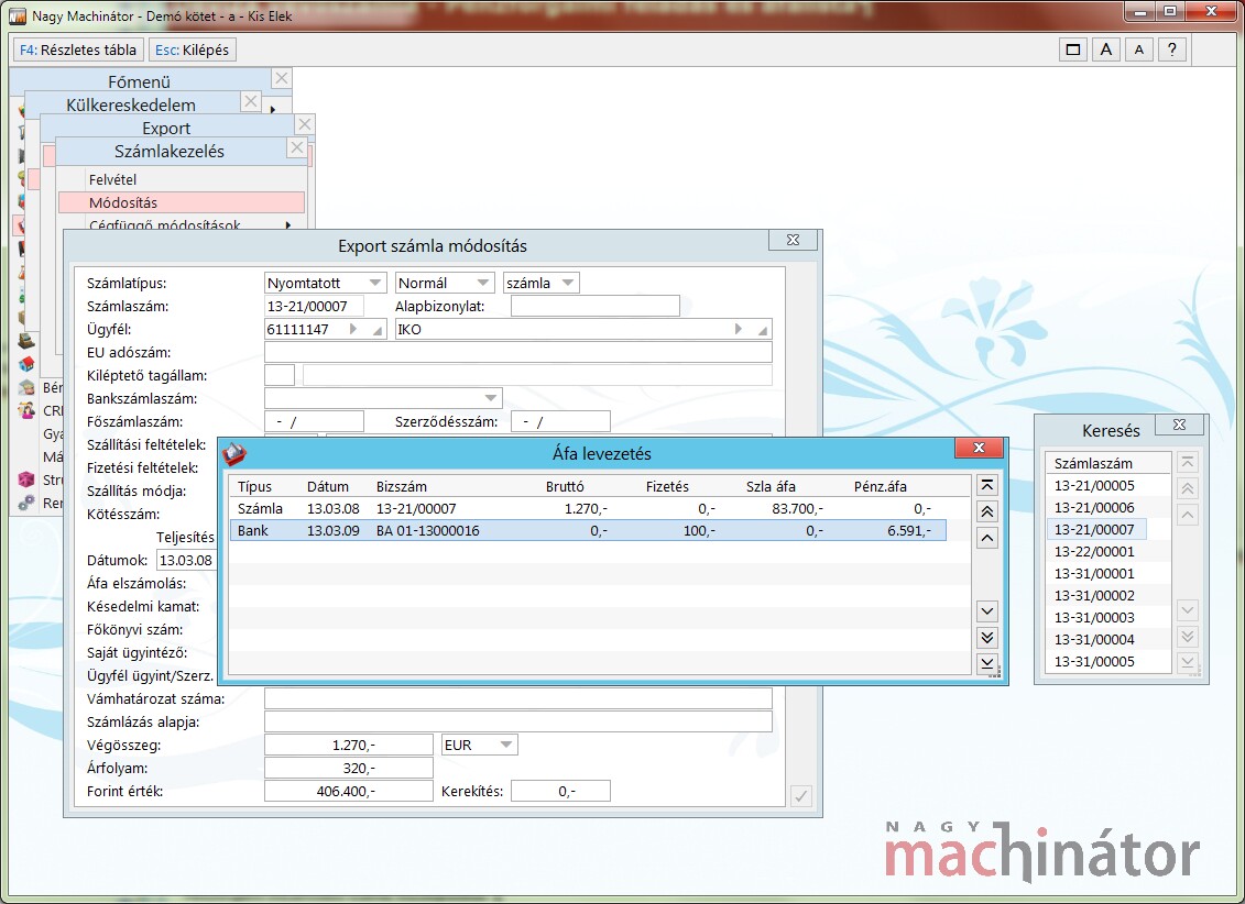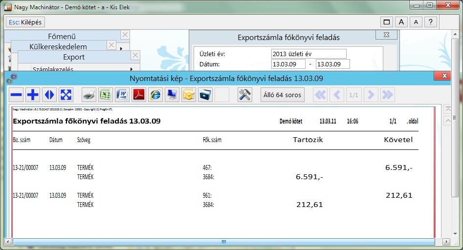 Ezt az összeget a program eltárolja az Exportszámlában és meg lehet tekinteni az áfalevezetés almenüpont alatt.