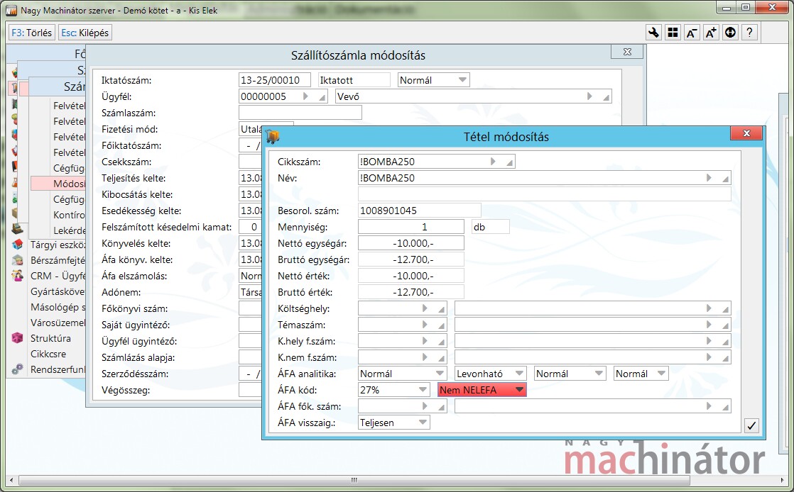 Ha egy helyesbítő számlában nincs megadva a Főszámlaszám mező, de a számla áfaösszege negatív, akkor NELEFA-nak fogja tekinteni a program.