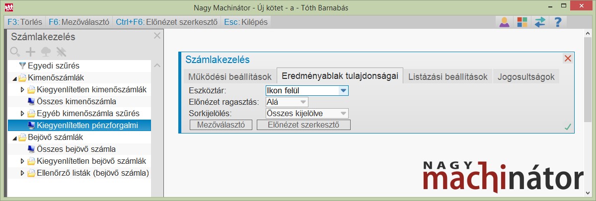 Az eredményablak működését meg lehet változtatni tulajdonságok ablakban.