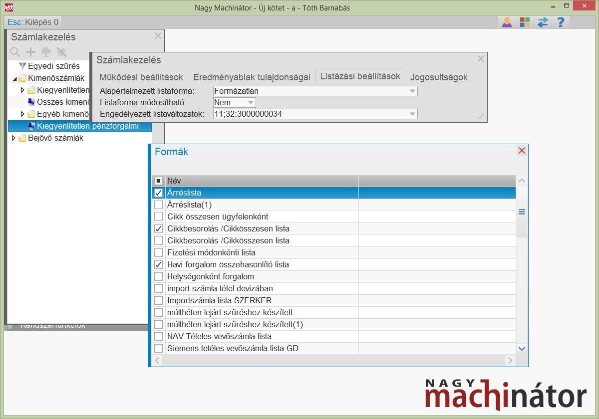 Saját listaformákat az Eredményablakban a Nyomtatás ikon megnyomása után lehet kipipálni.