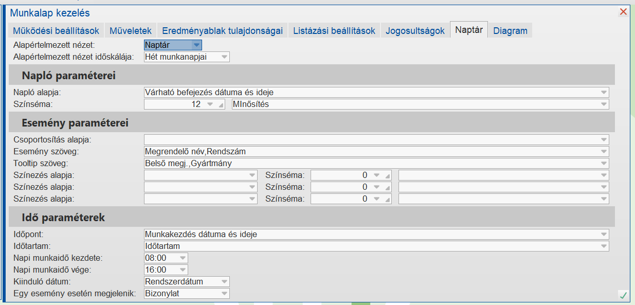 A munkalap átveszi a naptárról a Kezdés időpontját.