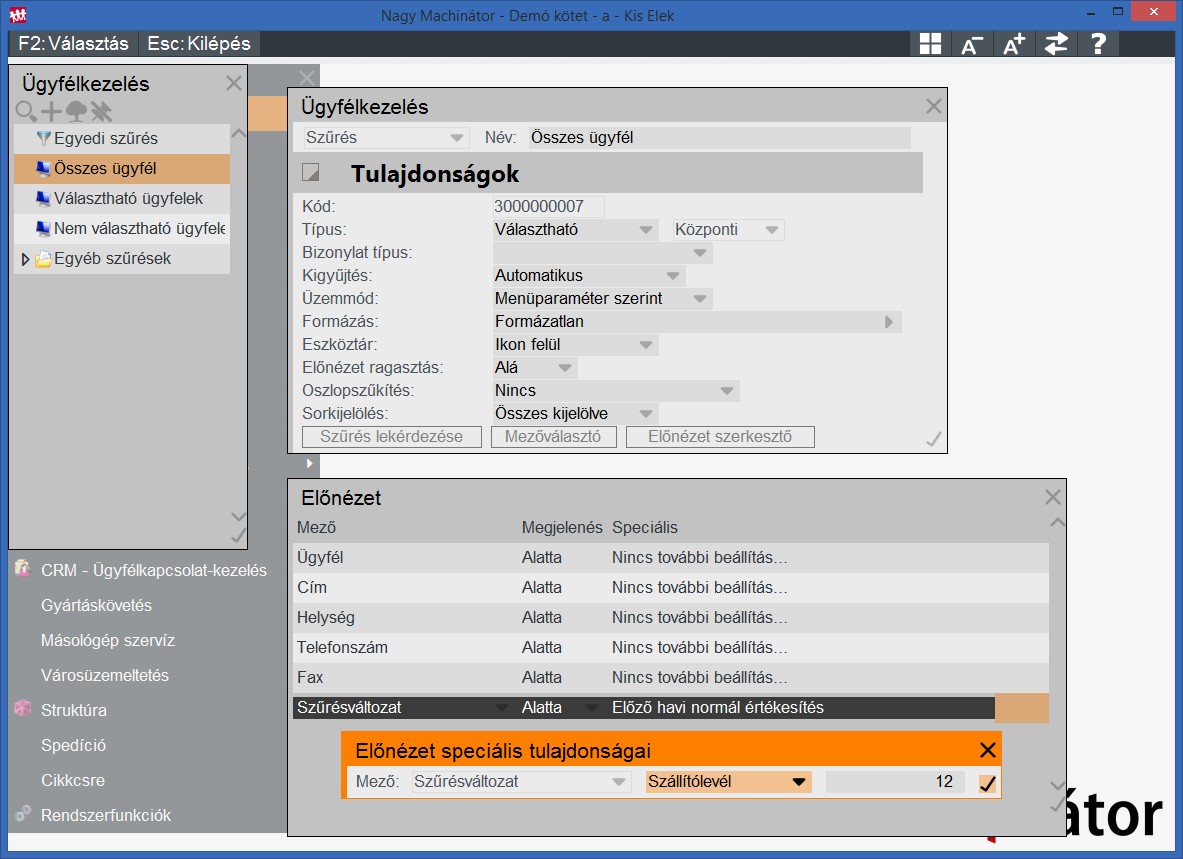 Az előnézetben megjelenő szűréseket a szűrés tulajdonságaiban található Előnézet szerkesztőben lehet paraméterezni.