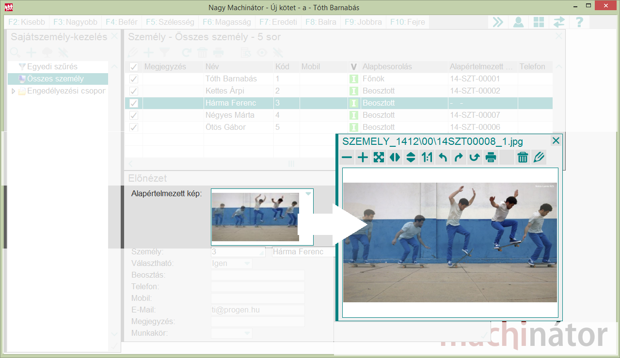 Nagyítani a képet úgy lehet, ha vagy rákattintanak a bélyegképre, vagy a rácsablakban az ikonra.