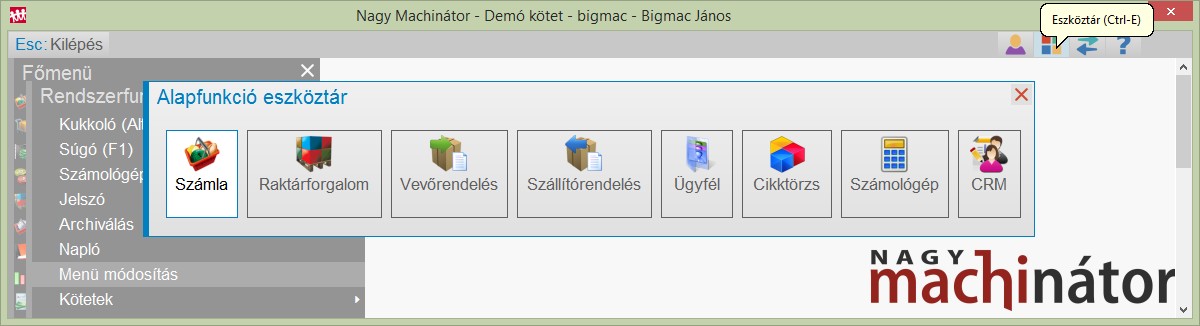 A bizonylatkezelés a következő bizonylattípusoknál lett eddig kifejlesztve.
