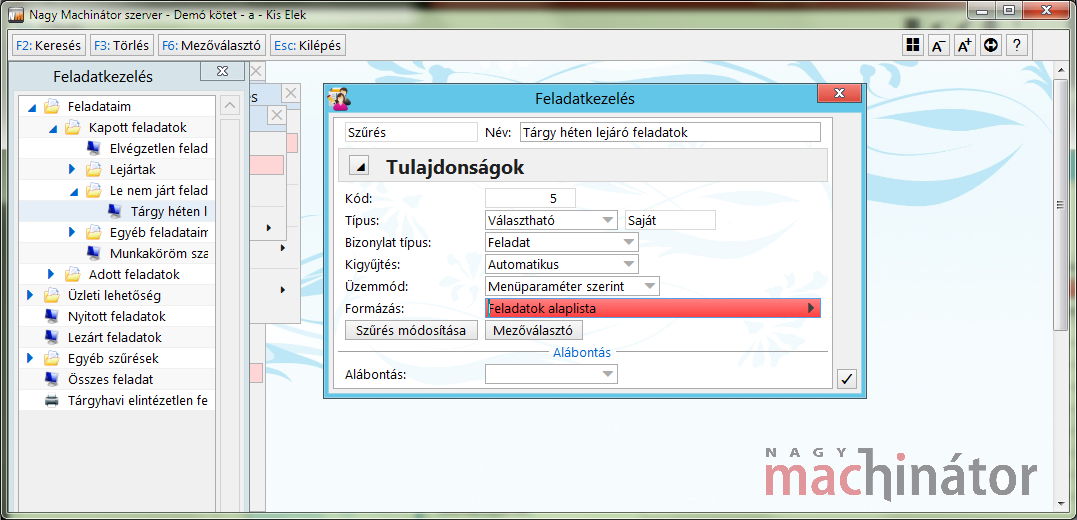 A legfontosabb lépés, hogy először a bizonylatkezelés szűrésfájában hozzuk létre azt a szűrést és olyan tulajdonságokkal, ahogy működtetni szeretnénk.