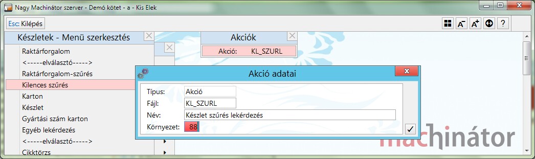Mielőtt ezt megtennék azt ajánljuk, hogy a létrehozott menüpontnak saját környezeti változót állítsanak be, annak érdekében, hogy a mezőparaméterezés hatása csak abban a menüpontban legyen érzékelhető.