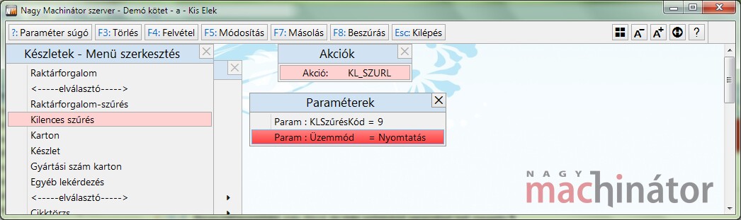 Bizonylattípusonként más Akció és más szűréskód paramétert kell megadni.