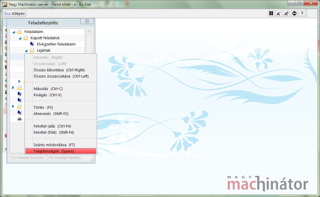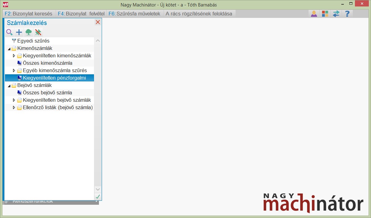 A Bizonylatkezelés funkció egy ún. szűrésfa nézettel indul.
