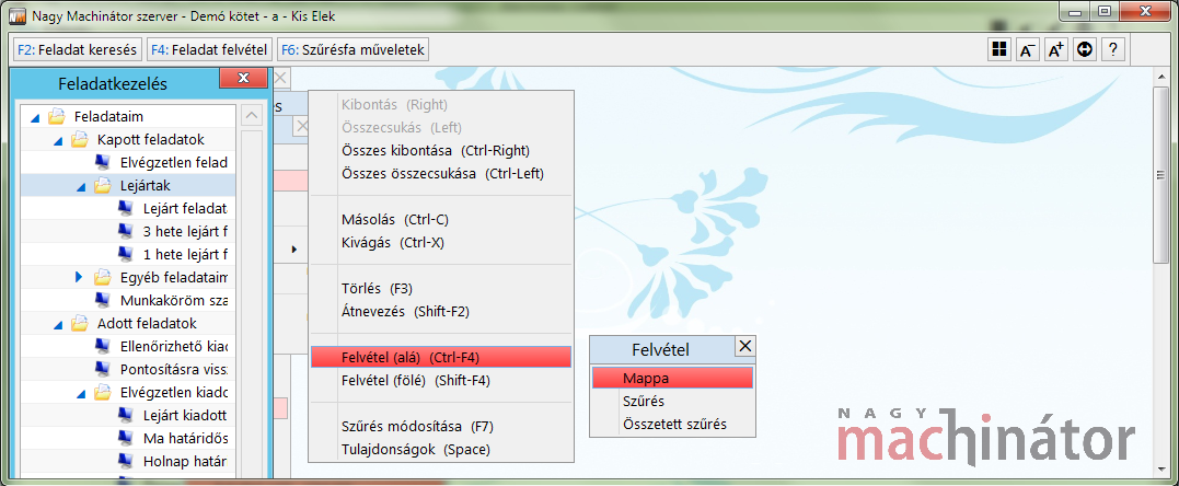 Szűrésfában három alapvető típust lehet felvenni: Mappa, Szűrés, Összetett szűrés