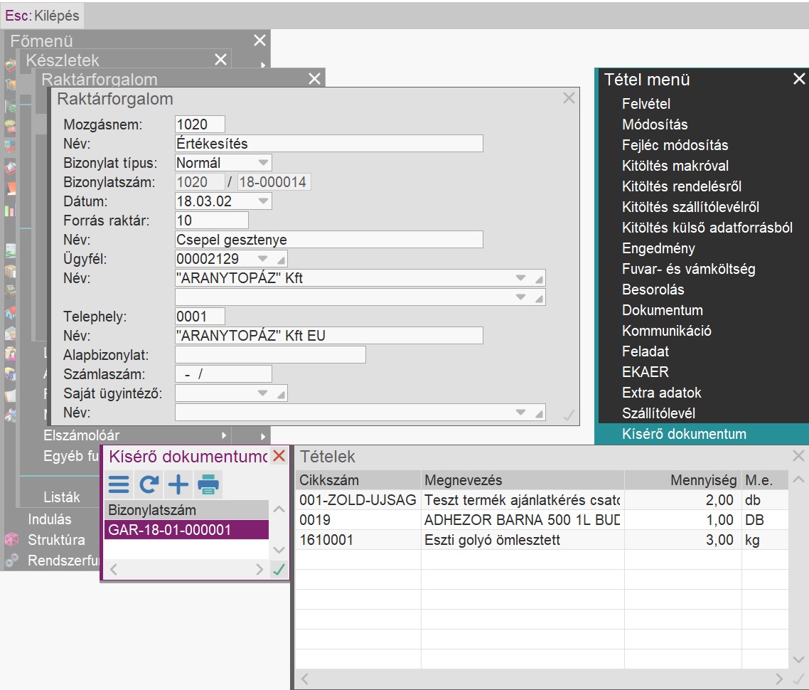 A kísérő dokumentumok bizonylatszámozása szigorú rendben történik, azaz a paraméterezésben megadható sorozaton belül a bizonylat sorszámok belenyúlási lehetőség nélkül, sorban követik egymást.