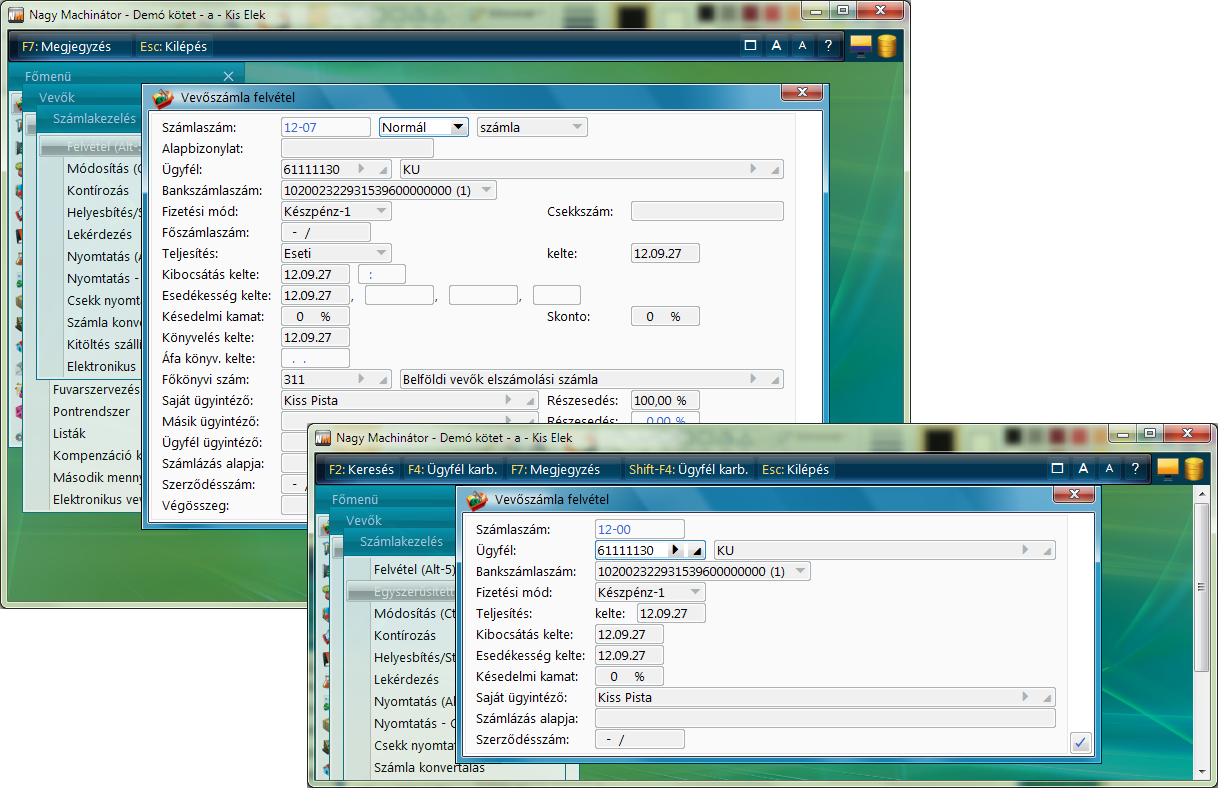 Ezután már megjelenik az a bevitel is, amelynek az összes mezőjét tiltottuk, akár programból, akár paraméterezéssel, így már átparaméterezhetjük. Ha végeztünk, kapcsoljuk vissza a mezőparamétereket (mezőparaméterezésben „F6: Mezőparaméterek bekapcsolása”).