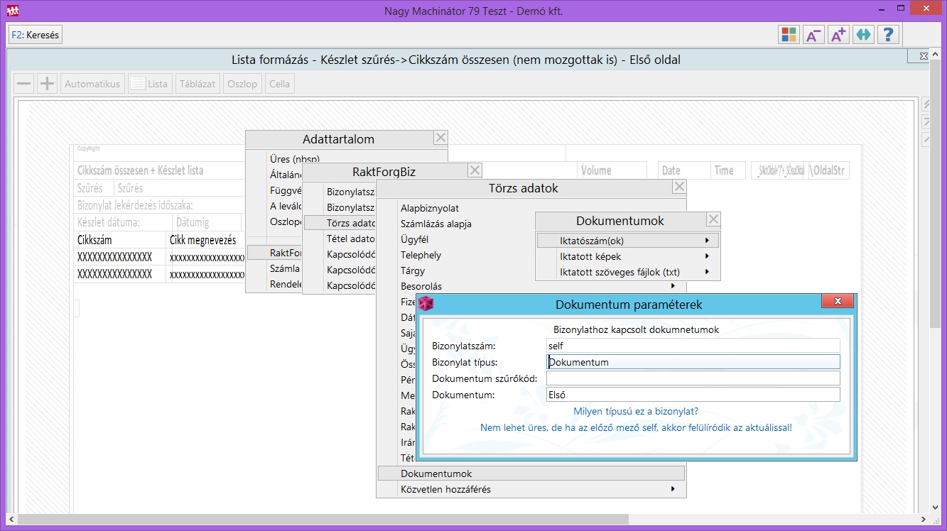 A menüpont segítségével a bizonylathoz tartozó dokumentum iktatószámát, képét tudjuk a szerkesztendő listába beszúrni.