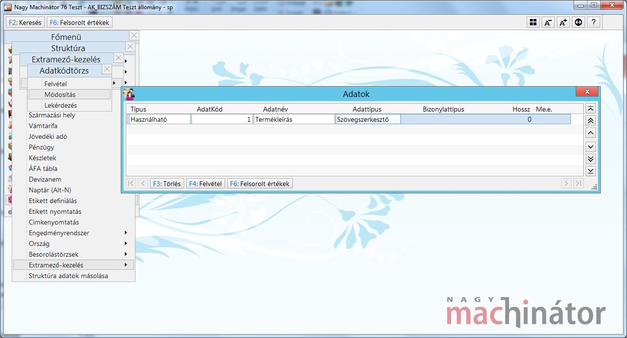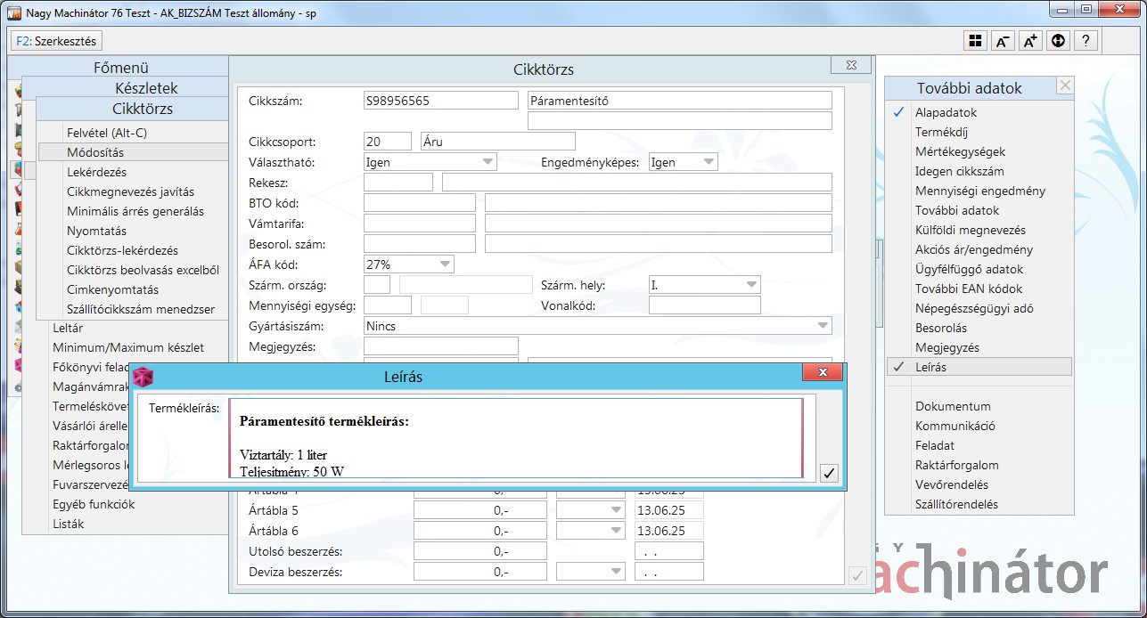 Amennyiben értékesítésekor a számlán a termék paramétereit, vagy leírását is fel szeretnénk tüntetni, akkor extramező-kezelésre van szükségünk.